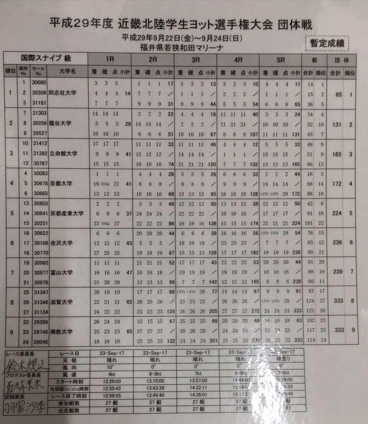 現在、470級が3位 スナイプ級が5位です。