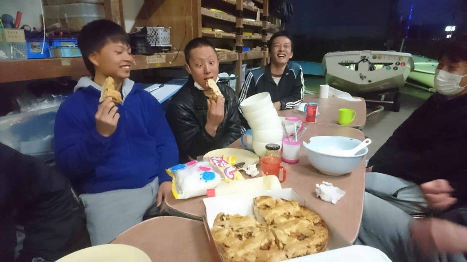しかし午前中は風がなく、駐輪場やマスト置きを作る等、艇庫のリフォームを行いました
