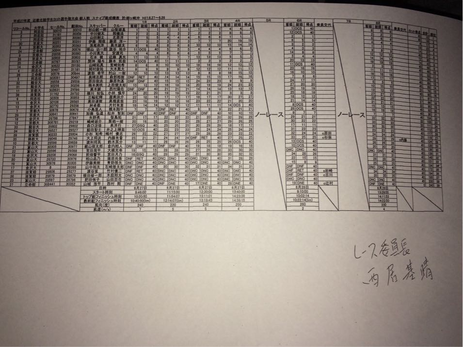 結果としては、470級は飯田・波多野ペア10位、野田・上野山ペア16位、瀬戸・鈴木ペア29位、スナイプ級は伊藤・藤原ペア4位、石本・近藤ペア8位、加藤・松井ペア22位でした