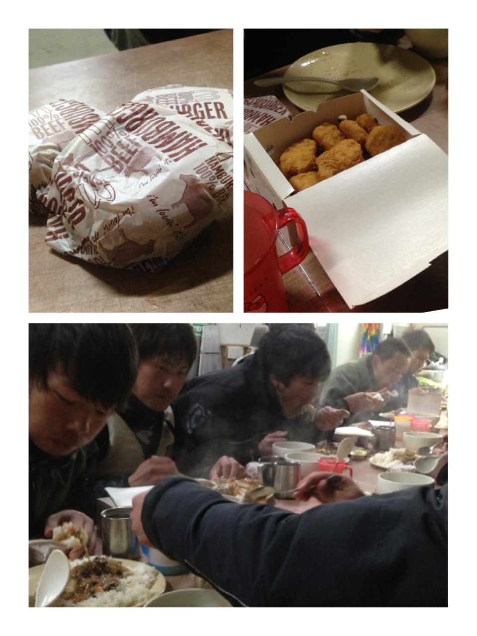 そして、お昼ご飯では艇庫飯に加え、木田さんが差し入れとして、1人ひとりにハンバーガーとナゲットを買って来て下さりました。
