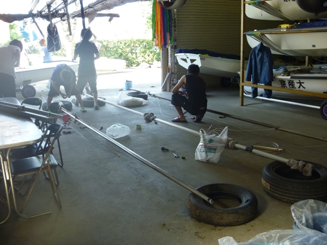 せっかくOBさんが来てくださってるのに、朝は風ない~出艇できない~(;´・`)