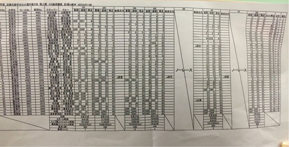 結果としては、470級は飯田・波多野ペア10位、野田・上野山ペア16位、瀬戸・鈴木ペア29位、スナイプ級は伊藤・藤原ペア4位、石本・近藤ペア8位、加藤・松井ペア22位でした