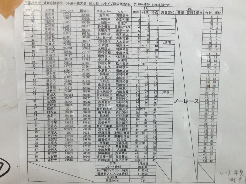 一日目は、1レース目の後に2レース目がノーレースとなったため実質1レースのみの結果となりました。