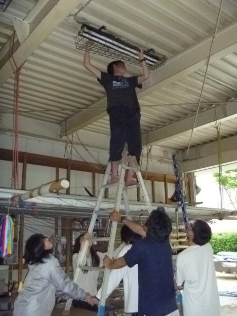 午前出艇の際、福田がスナイプの新艇を作るために丘に残ってました。苦戦してたようです(--;)